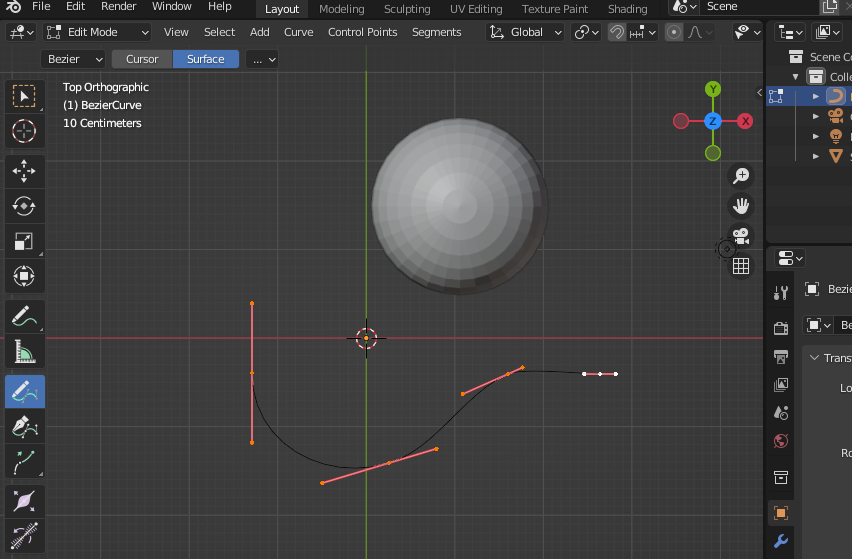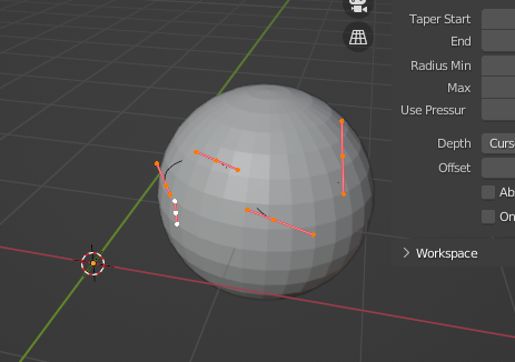 4.还可以将3D光标放置于模型某处,并选中曲线的点按Shift+S,将点吸附至目标处。