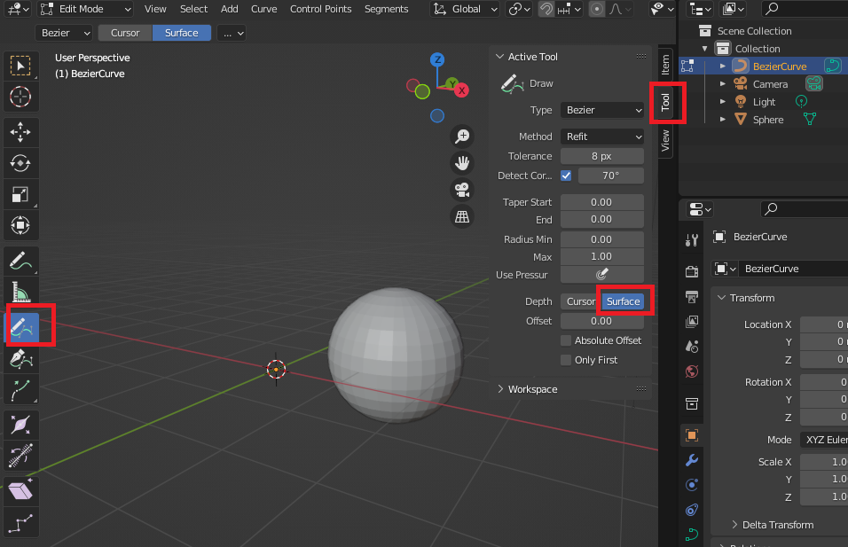 10.如果想在模型表面绘制,可在Tool中将Depth设置为Surface