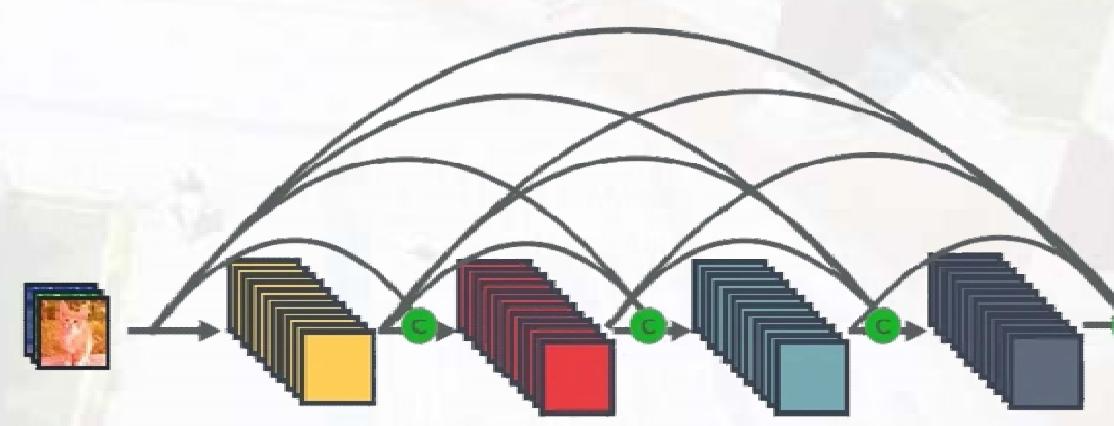 - 保存了低维度的特征:解释了为什么训练数据不足时DenseNet表现依旧良好。