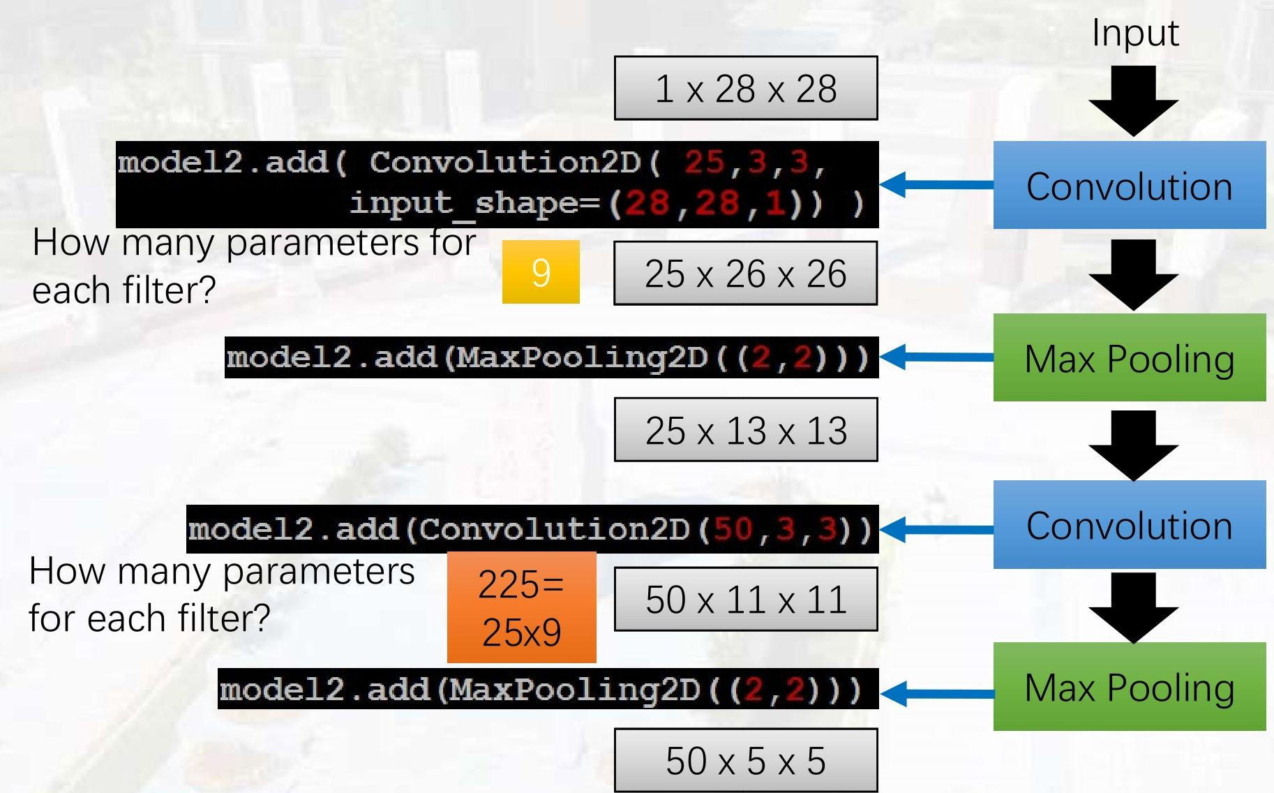 三、第二个卷积层 Convolution2D(50, 3, 3)