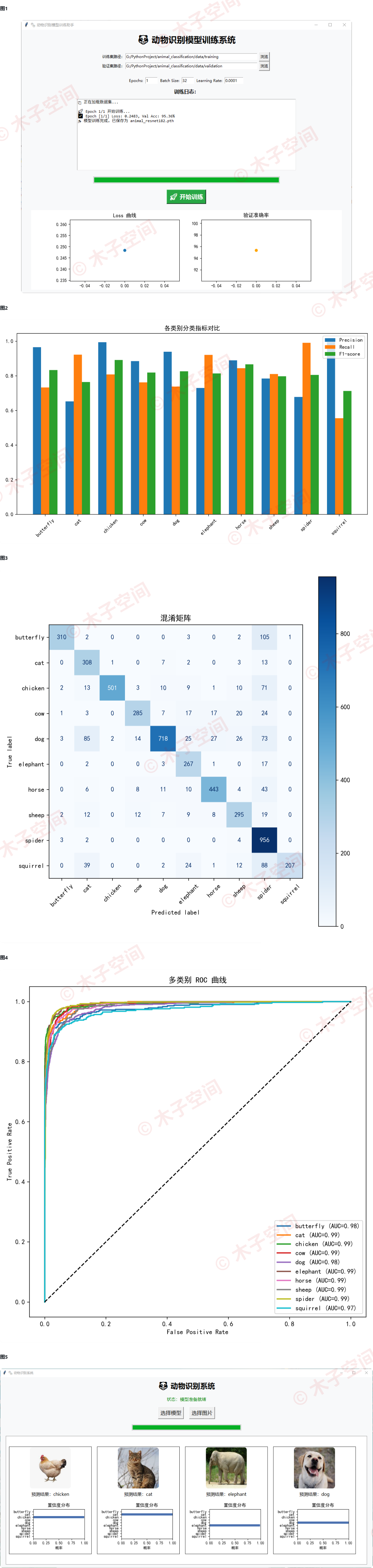 本文介绍一个使用PyTorch构建的动物识别系统,支持数据预处理、模型训练可视化与预测功能。项目提供参数自定义接口与实时日志输出,可评估模型性能并生成分析图表。