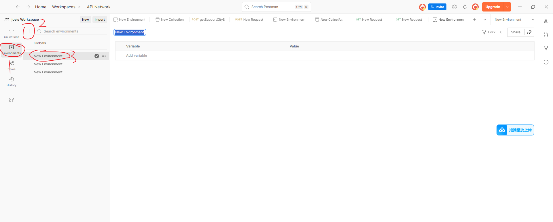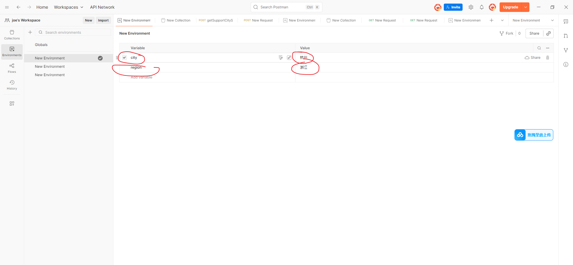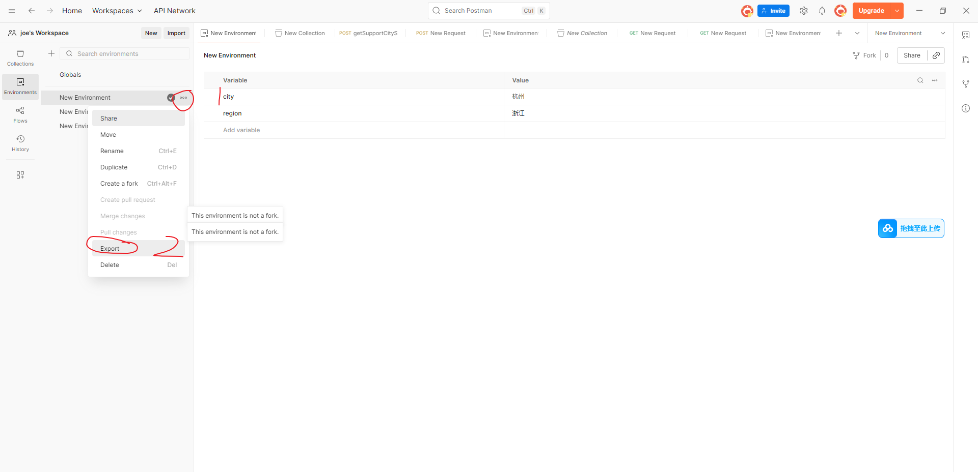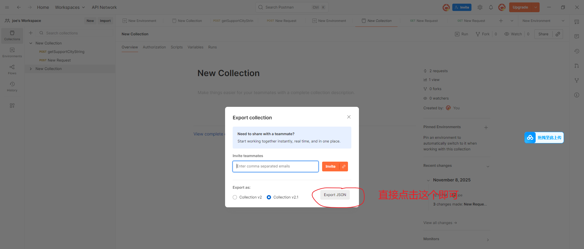 这个地址就是 之前从postman里面导出来的 一个两个接口的josn和一个环境
