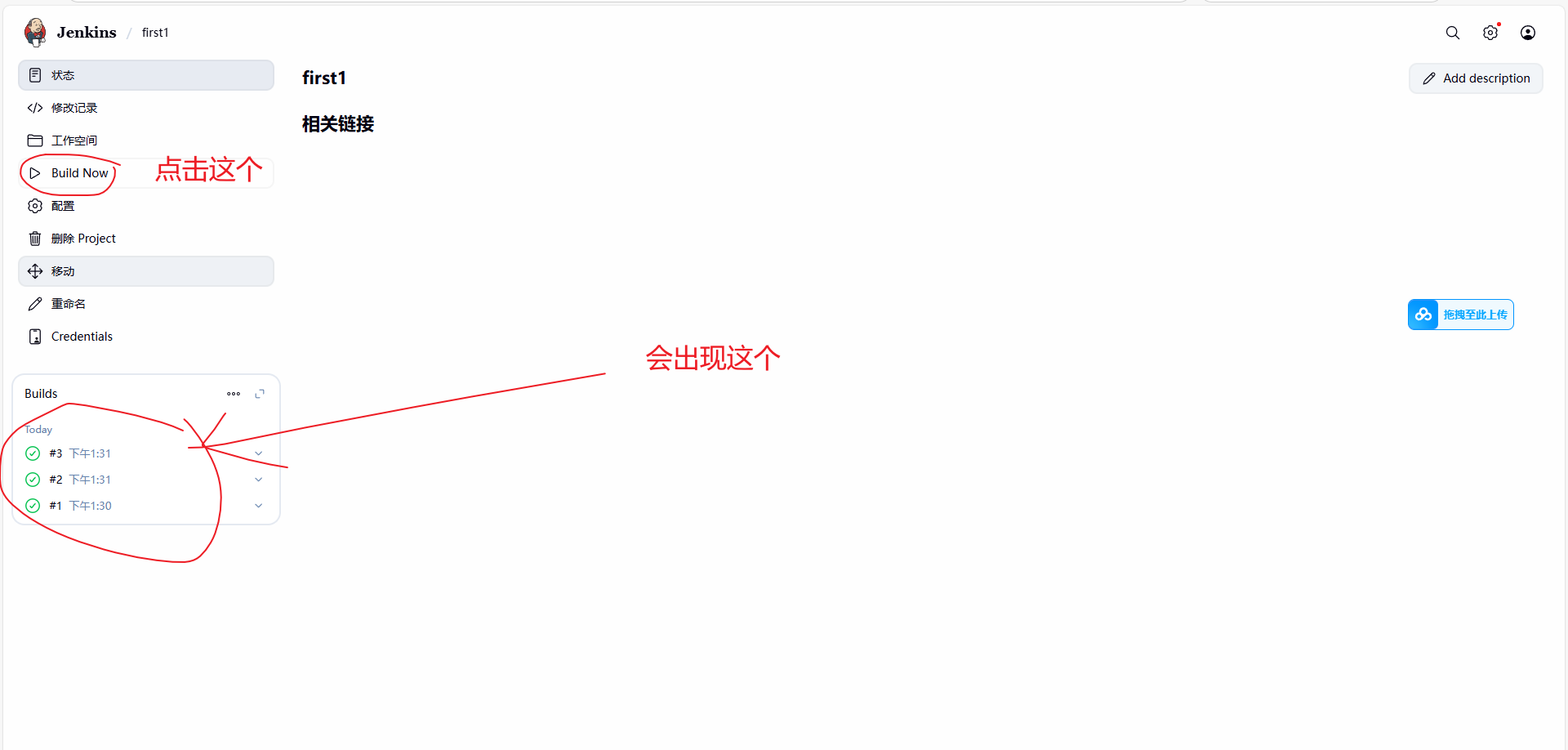 27.save之后,会跳到这个页面,点击build now