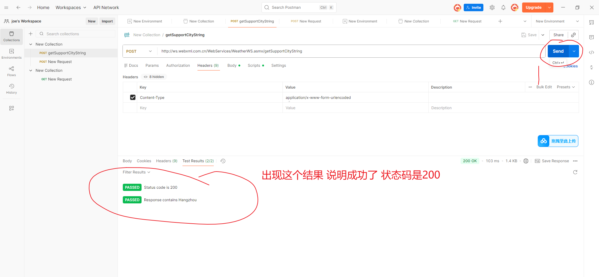 8.然后点send,发送一下 ,看一下是否成功