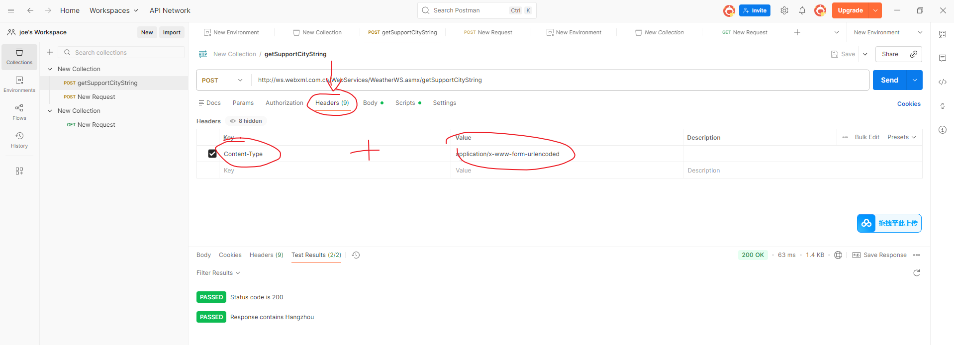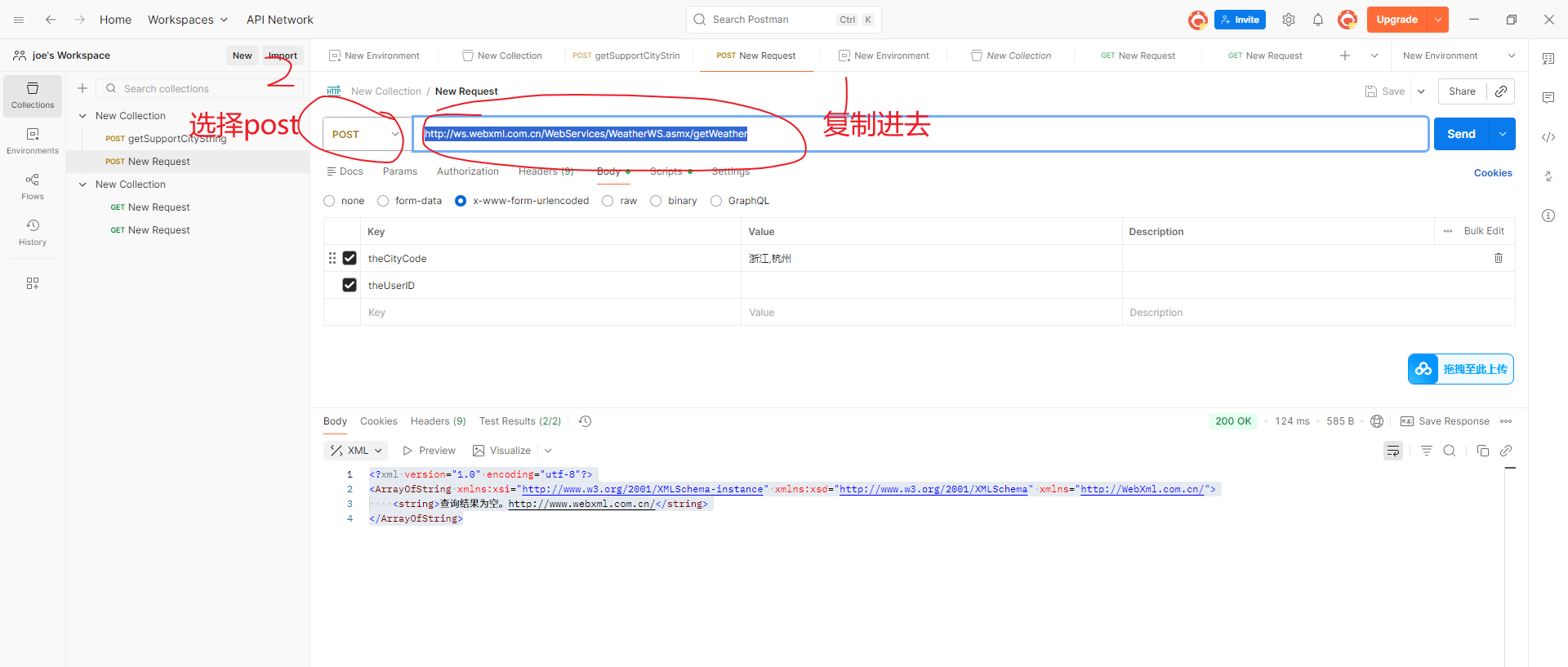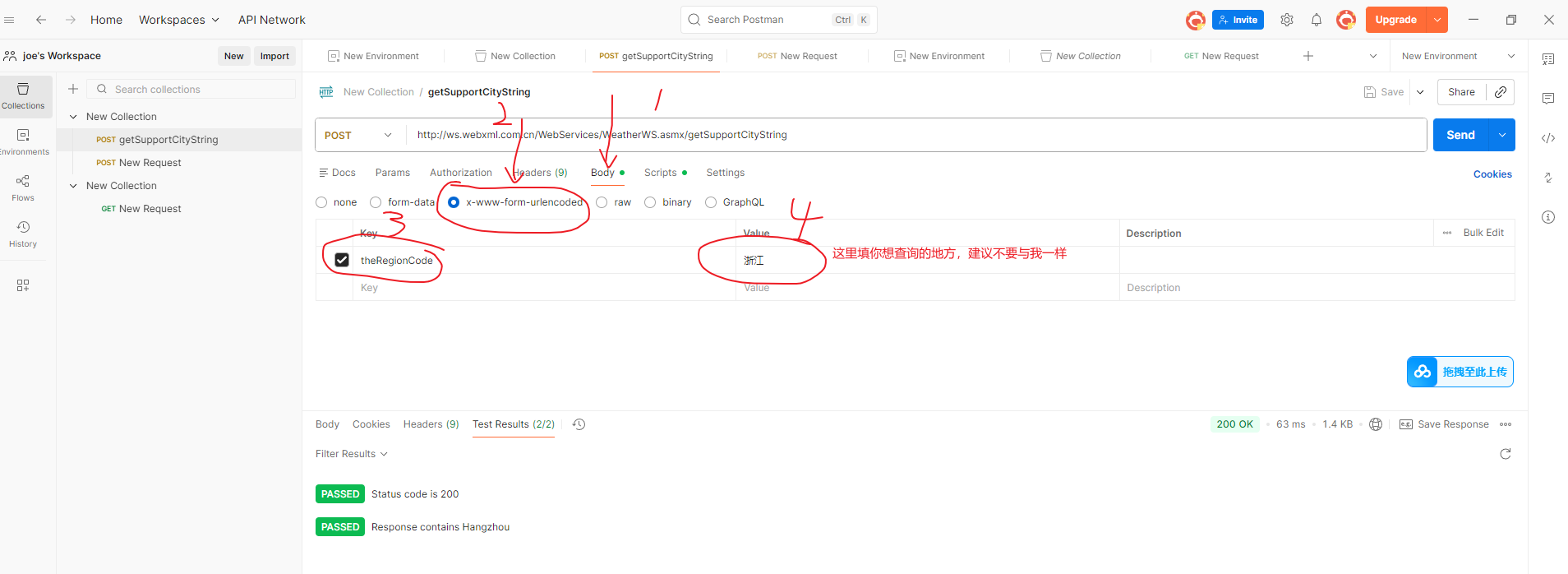 4.将接口的url拿过来, 接口 1(getSupportCityString):http://ws.webxml.com.cn/WebServices/WeatherWS.asmx?op=getSupportCityString