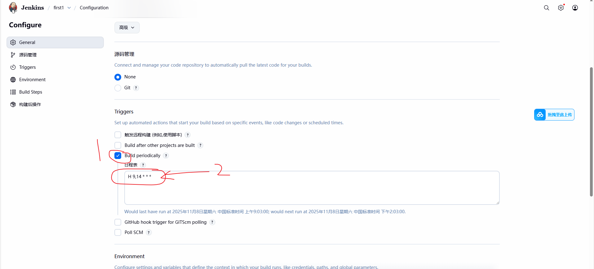 6.通过jenkins实现每天早上9点及下午2点自动测试以上两个接口。