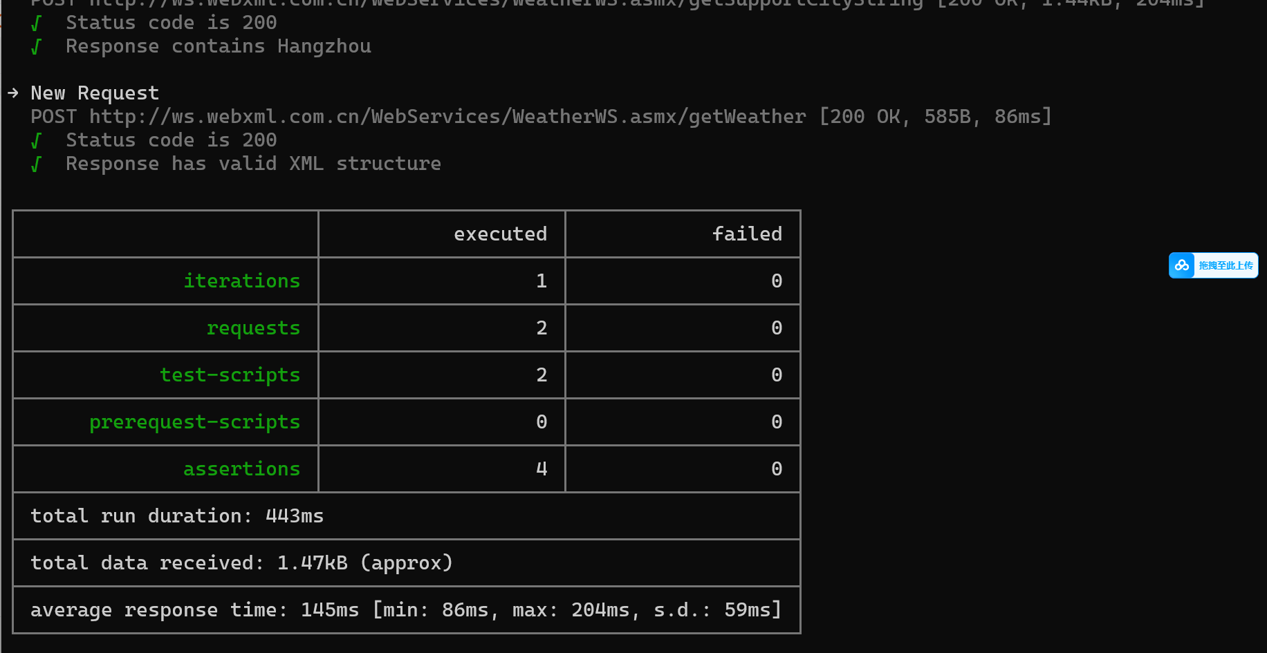 // 断言1:状态码为200(接口可达)