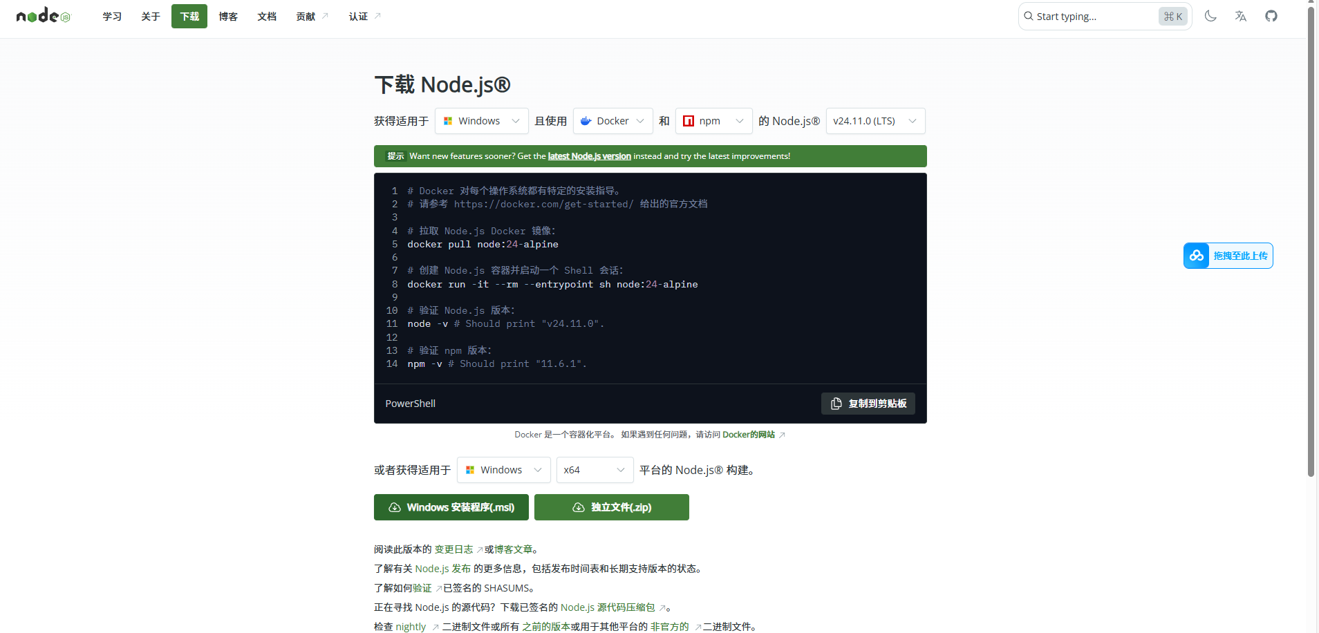 16.保存完之后,要下载node.js:Node.js --- 下载 Node.js®