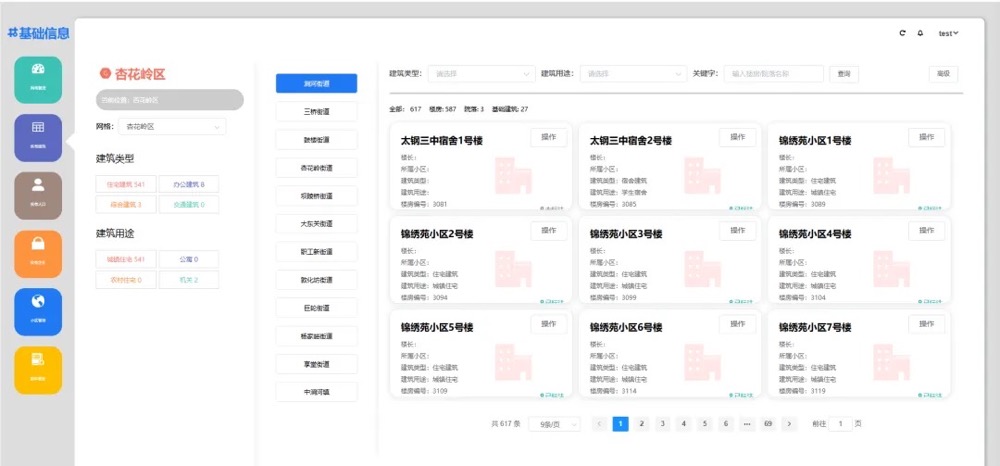 平台构建社区基础数据库,精准管理党建档案、网格划分、房屋地址、人口户籍、企业注册、公共部件等信息,支持地址精确至房屋层级。通过与人工录入,动态更新数据;服务流程 、设备状态 、服务记录 等信息实时归档,形成完整的服务闭环。同时,结合出租屋管理 、重点人员轨迹分析等功能,强化基层治理的数据支撑能力。