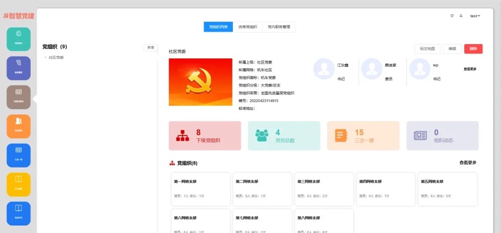 智慧社区平台以党建为核心,构建"党建+社区治理"新模式,覆盖宣传、服务、监督、管理、学习五大功能。通过网格微站 、党建联席会 、组织生活馆等模块,实现党组织与居民的高效联动。结合视频联网、数据地图,实时掌握社区动态,助力党员参与网格治理,提升基层党组织的凝聚力和执行力。