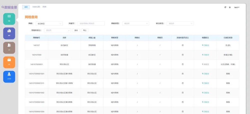 平台整合社区党建、网格管理、建筑信息、人口档案、企业数据、小区设施及公共部件等多维度数据,构建统一的数据资源池。通过人工录入,实现数据动态更新与精准管理,支持地址精确到房屋层级,覆盖社区全要素信息。
