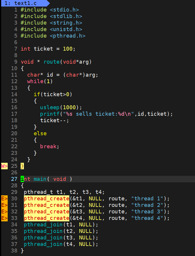 操作共享变量会有问题的售票系统代码: