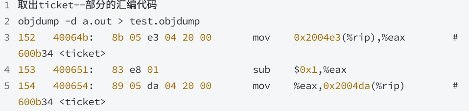 ticket从内存读取到寄存器中 - 更新(update):对寄存器中的值执行减1操作