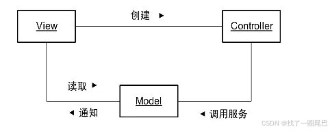 Controller → Model:控制器 "调用服务",向模型请求数据或操作