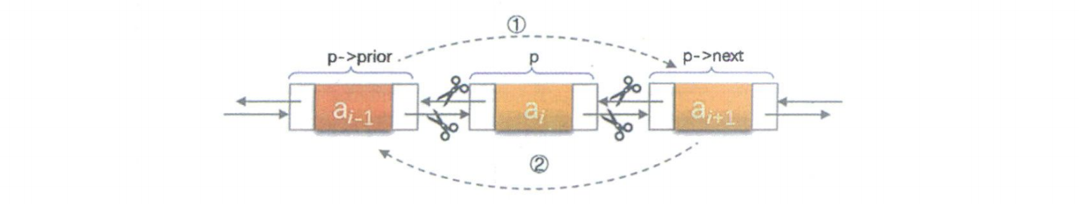 if (p == NULL) return;if (p->prior != NULL) { p->prior->next = p->next; // ① 前驱的next指向后继 } else { (*L)->next = p->next; // 如果p是头节点,更新头指针 } if (p->next != NULL) { p->next->prior = p->prior; // ② 后继的prior指向前驱 } free(p); // ③ 释放内存 p = NULL; // ⚠️ 非常重要!防止野指针!}