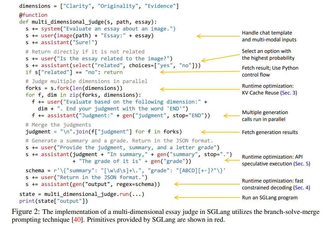 I think there are 3 advantages in SGLang. It allows direct programing in python, it suuport RadixAttention to effeicient KVCache reuse, and it used compressed finite state machine to accelerate the structured output.