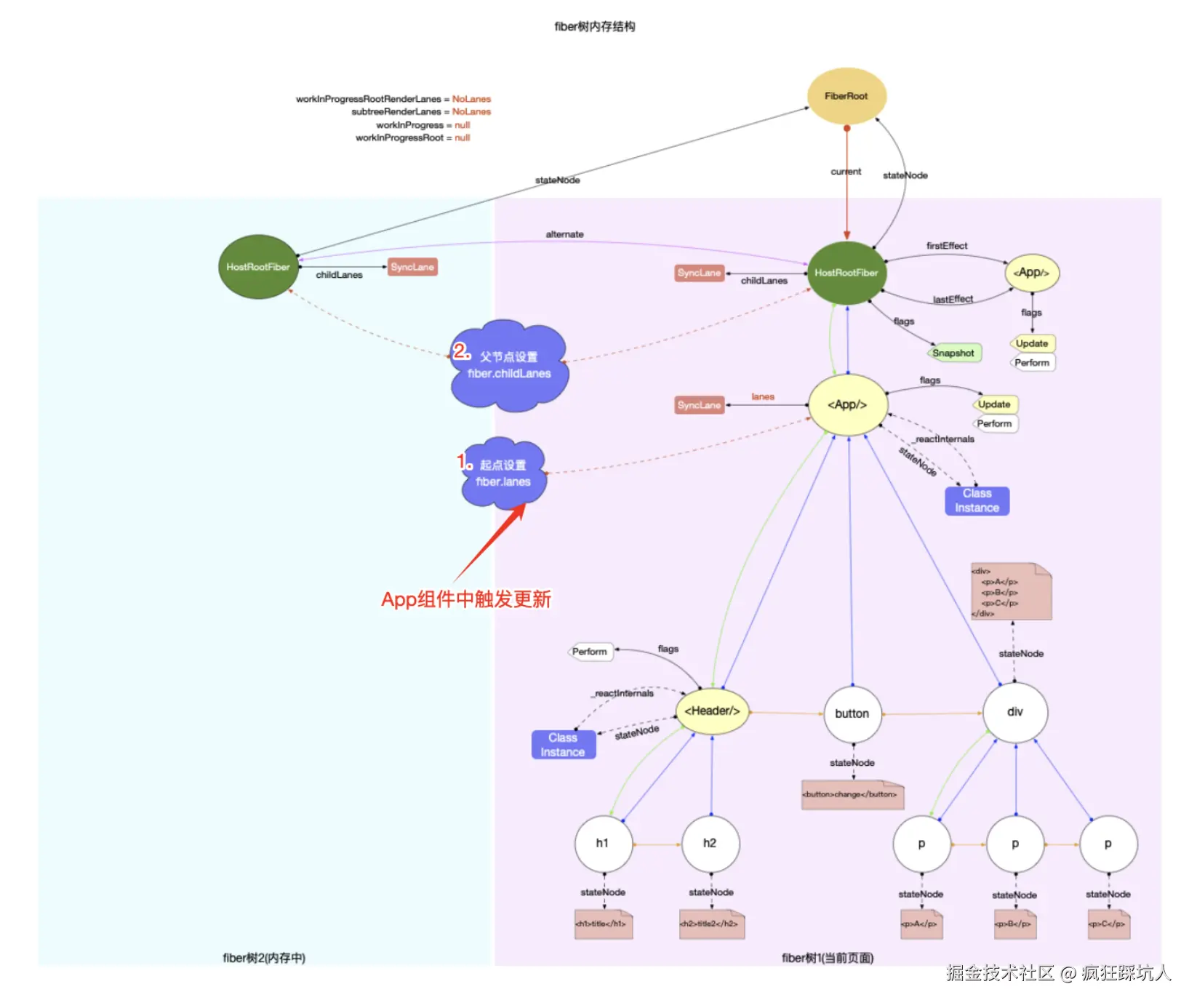 - 本文很多图都出自7kms大佬的 图解React,对理解React非常有帮助,强烈推荐大家学习。(P.S. 7kms大佬是基于React17进行分析的,有些地方(比如EffectList)和最新的React 18/19是有出入的,所以另外再推荐一本书:卡颂的《React设计原理》)