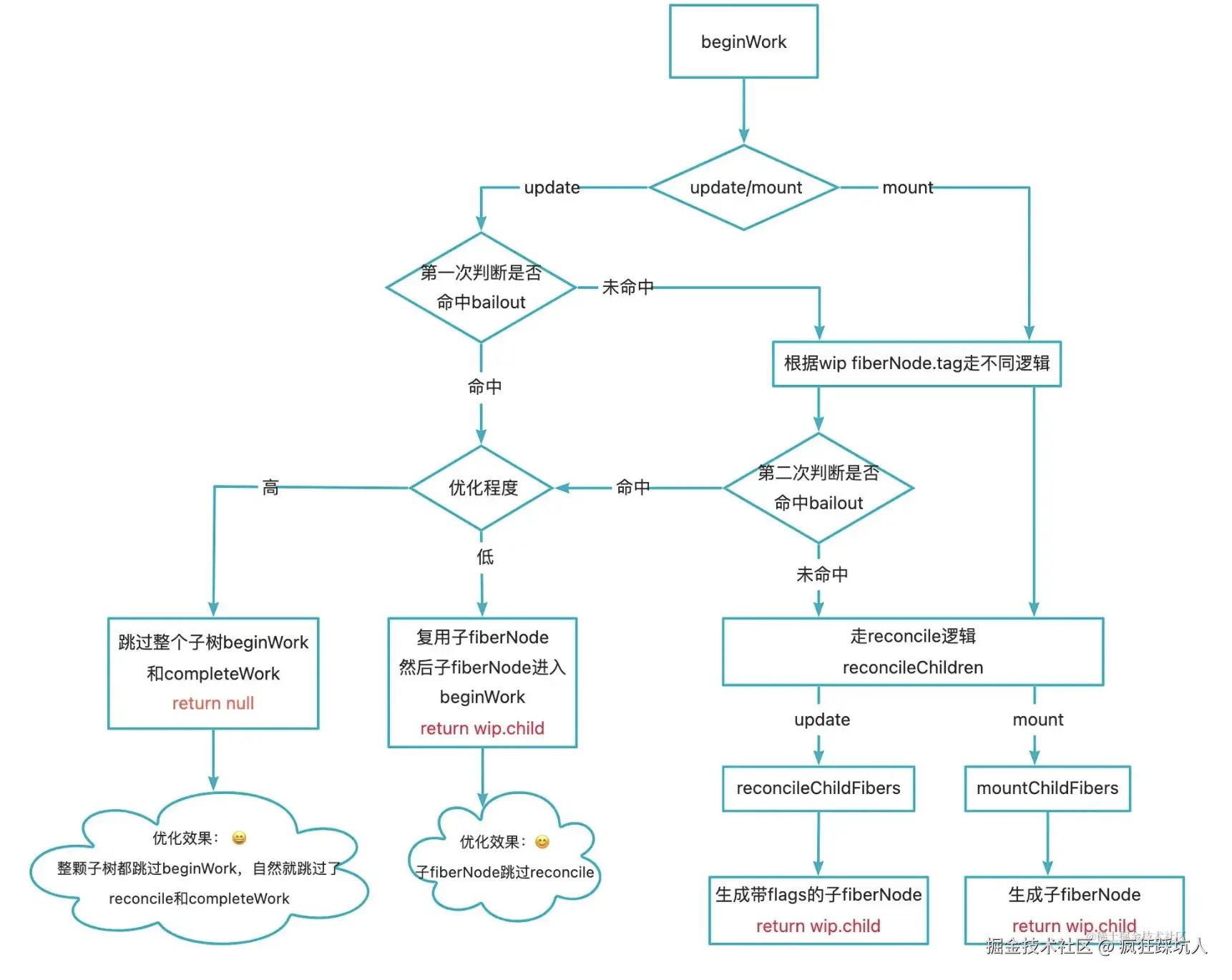 - 更深刻理解React的原理,包括渲染流程、Diff算法、bailout策略和hooks等。