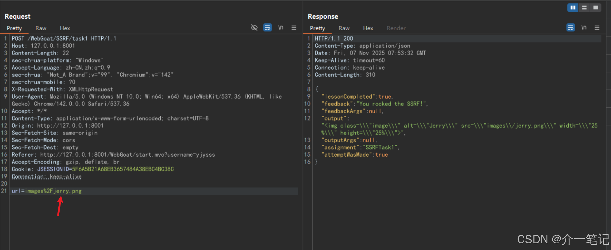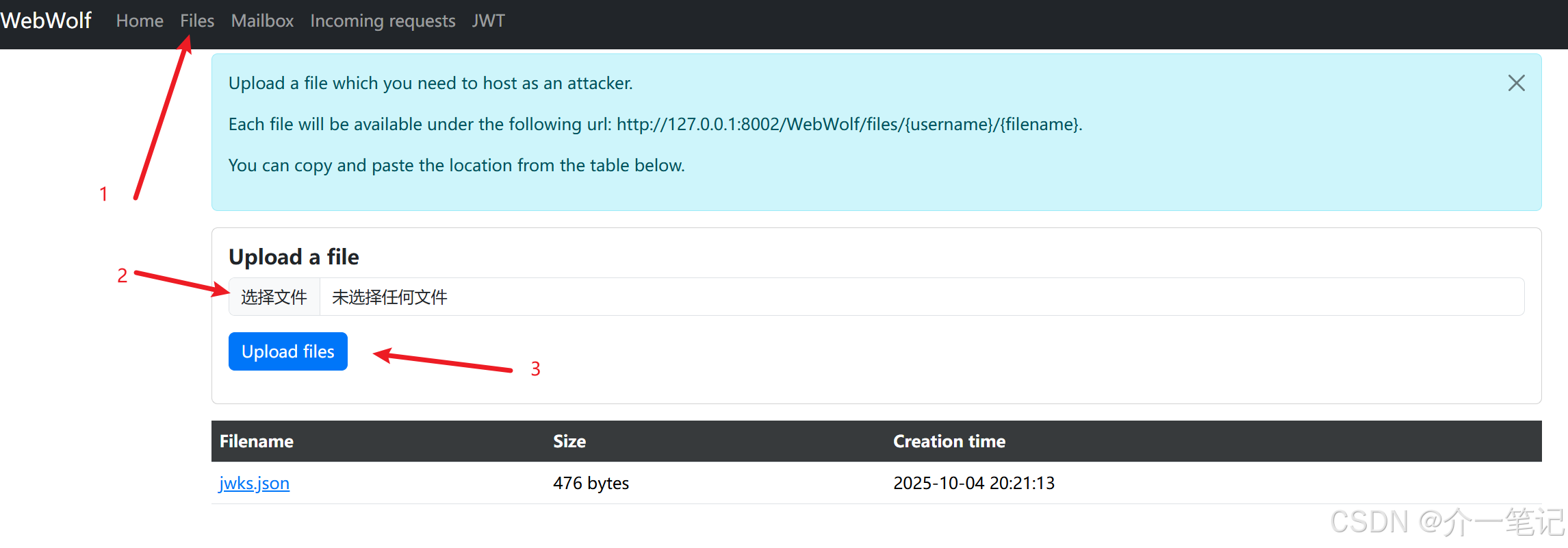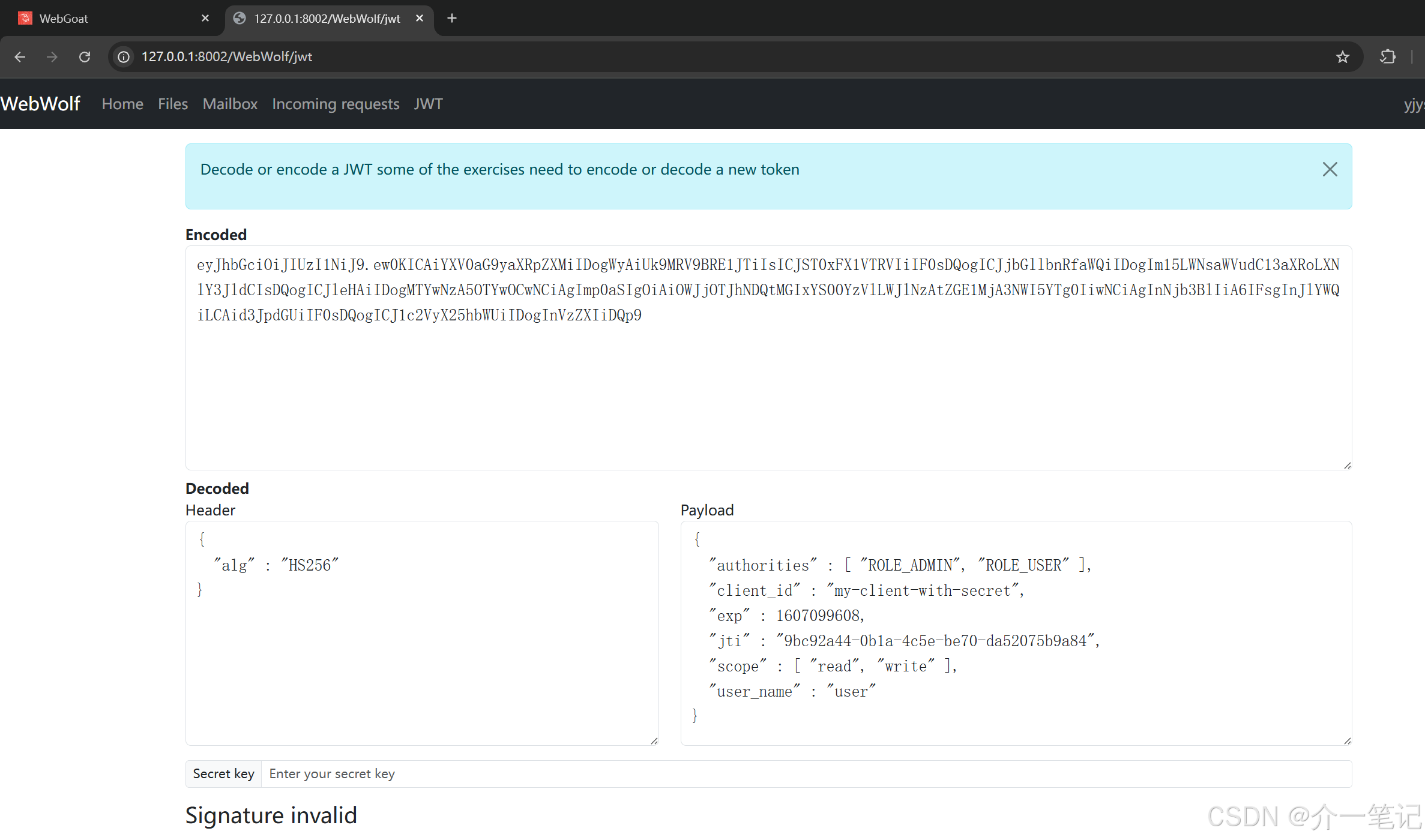 在 webwolf 平台查看请求:http://127.0.0.1:8002/WebWolf/requests