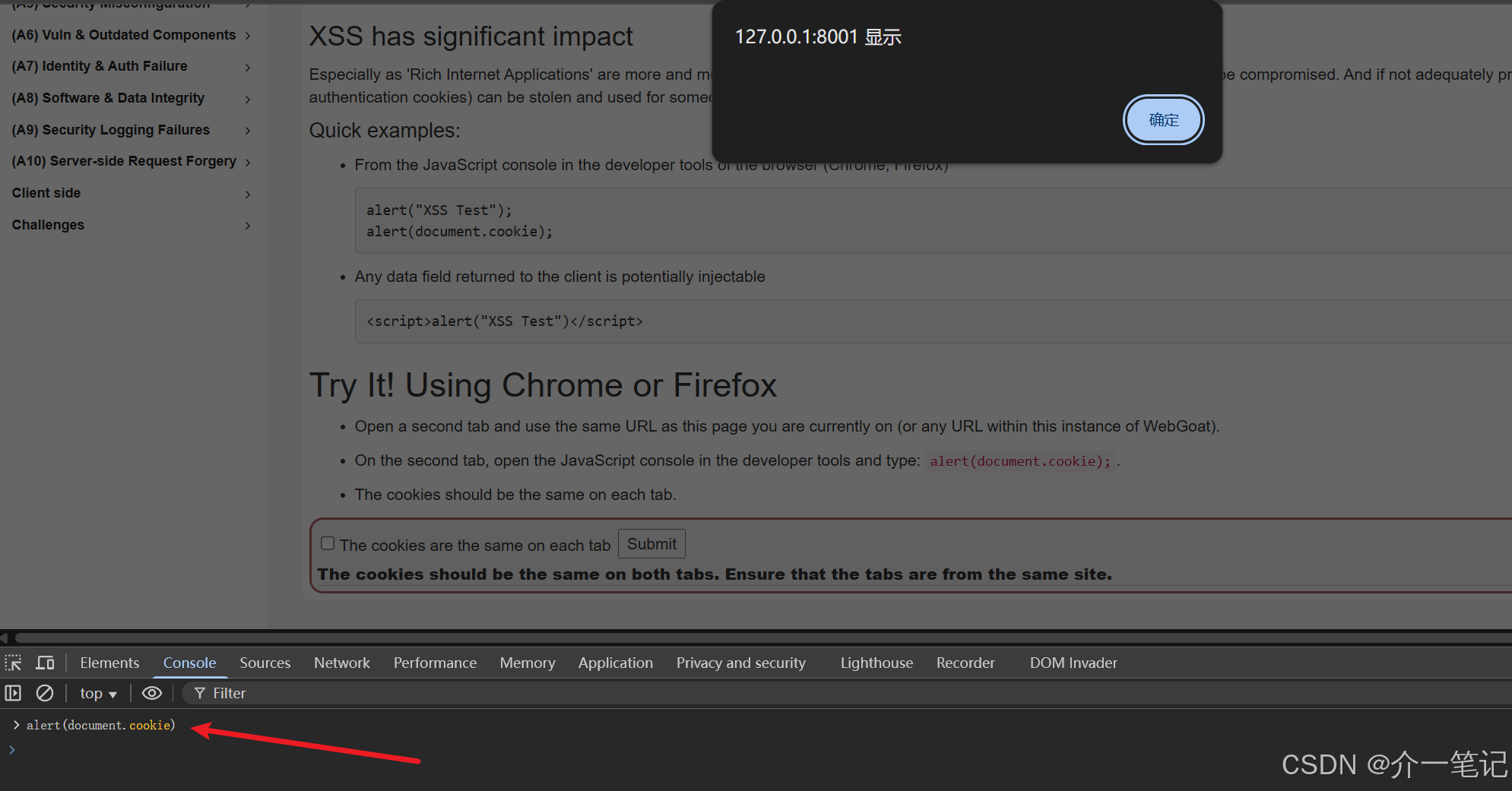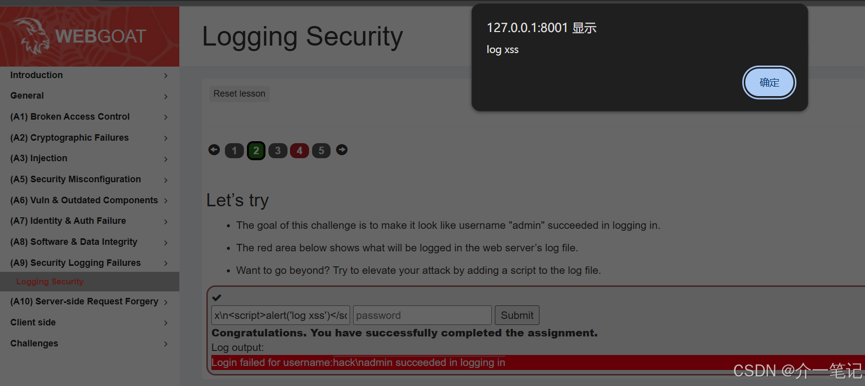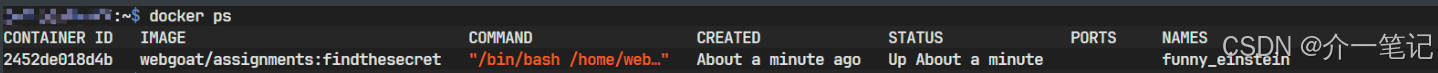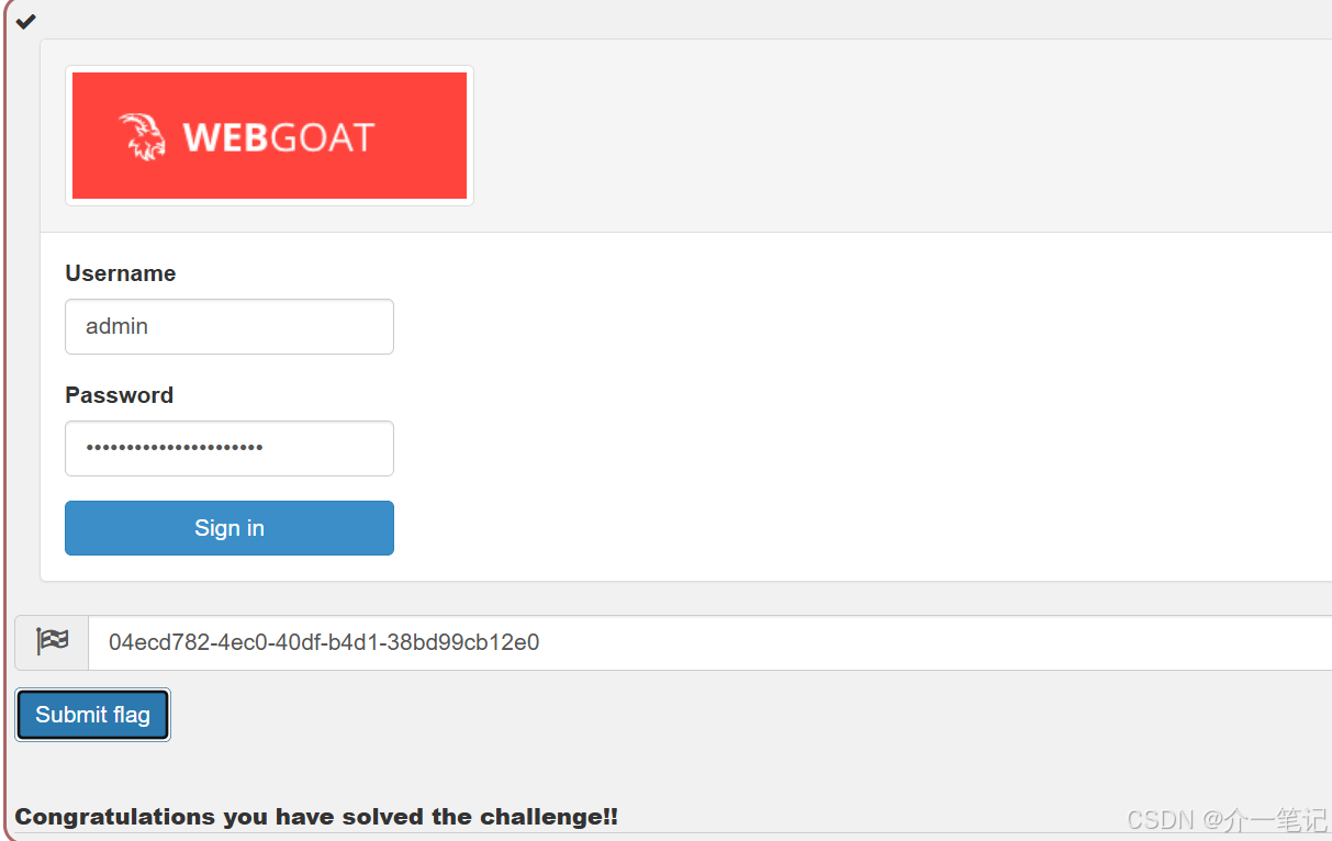 shell# 以 Ubuntu 系统举例 sudo docker run -it -p 8001:8080 -p 8002:9090 -e TZ=Asia/Shanghai webgoat/webgoat -