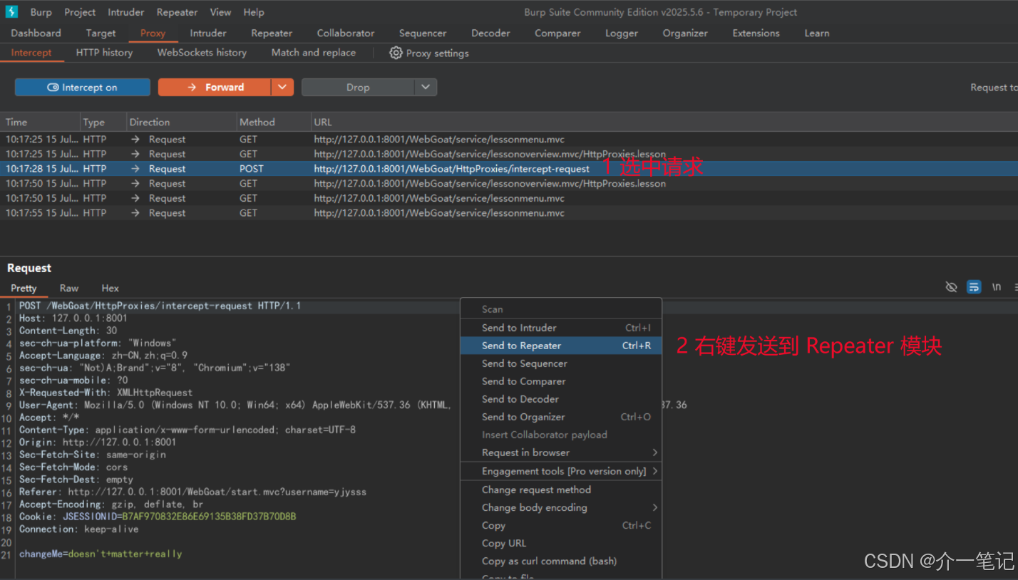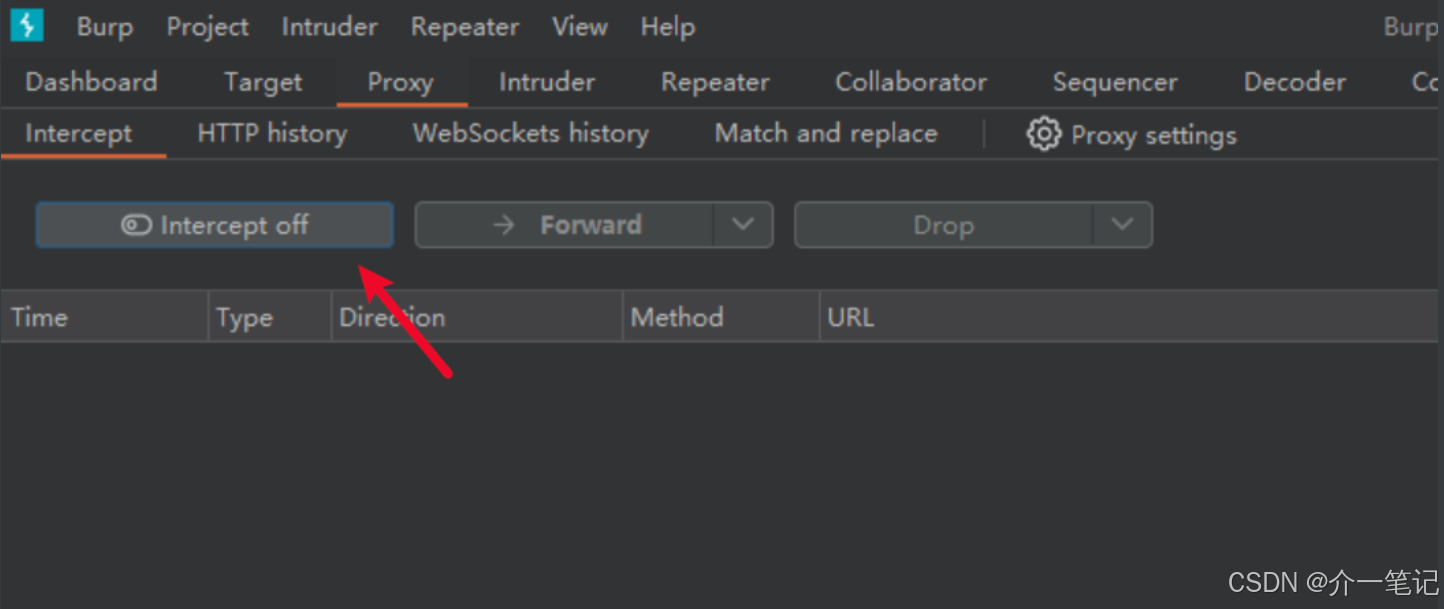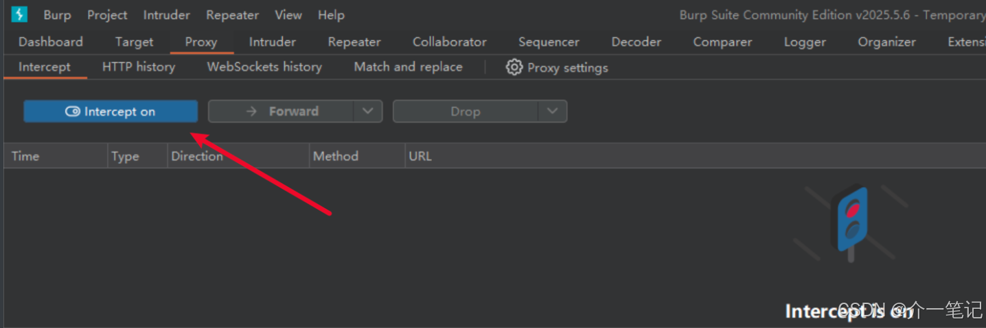 开启 BurpSuite 拦截开关: