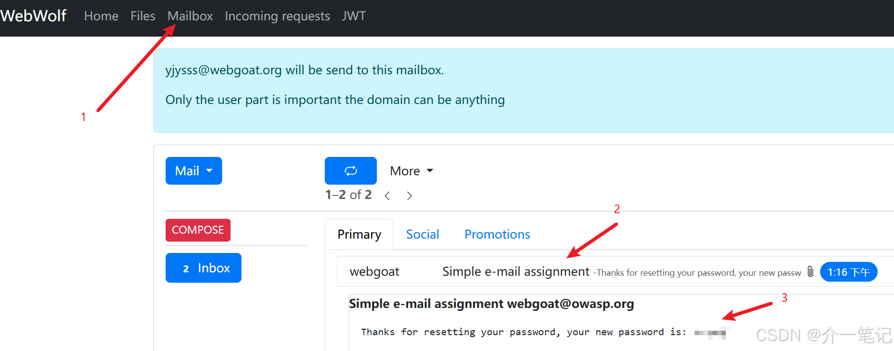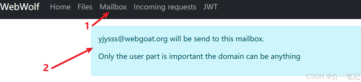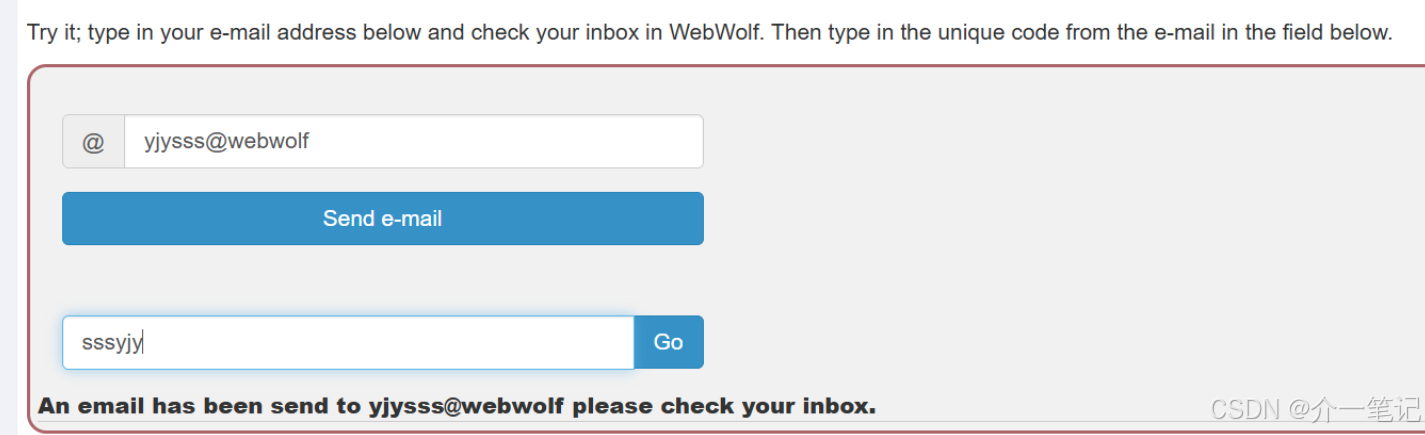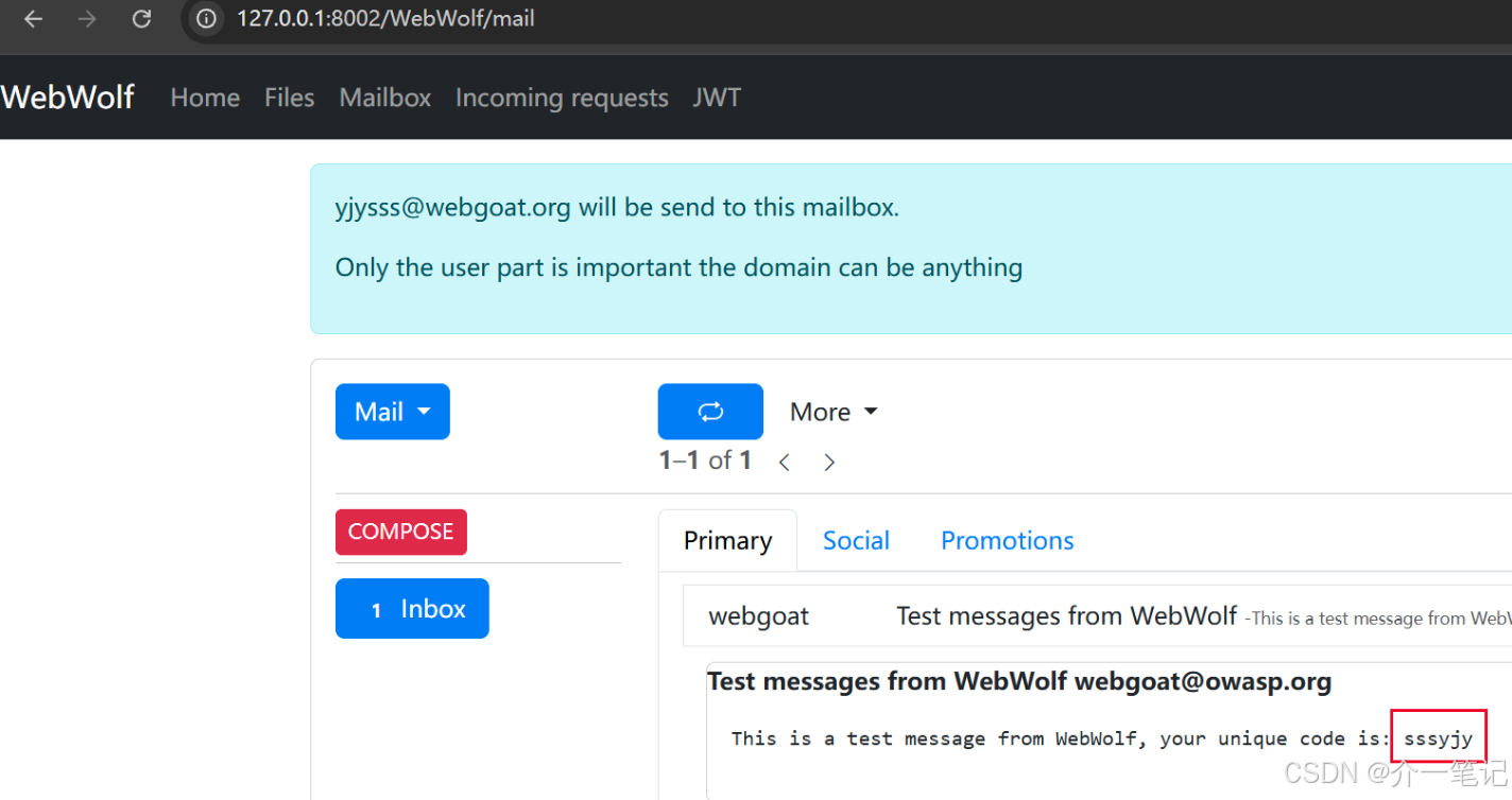 在 webwolf 平台接收邮件获取验证码:http://127.0.0.1:8002/WebWolf/mail
