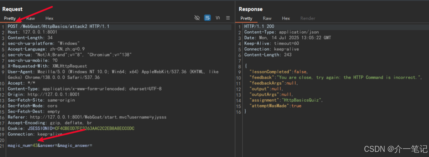 直接点击 GO 并抓包该请求,发现该表单请求是 POST 类型,魔术数字在请求体参数 magic_num 中。