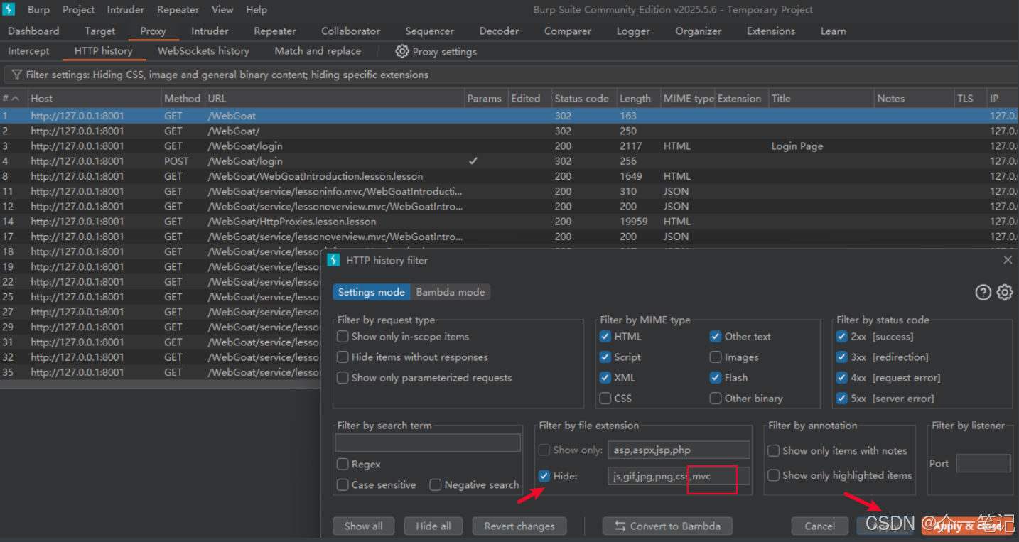 本章节让我们排除 webgoat 服务的 mvc 这些无关的请求: