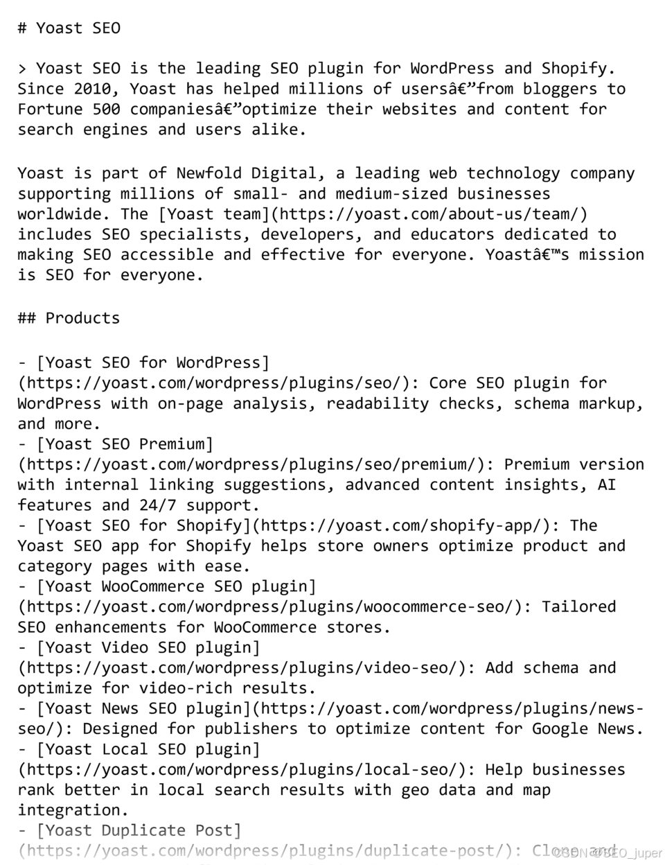 例如,Yoast SEO 的 llms.txt 文件如下所示: