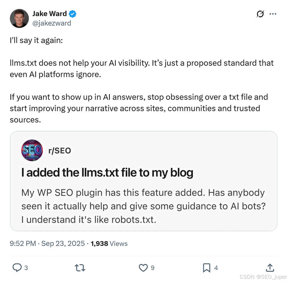 - 易遭滥用:独立的markdown文件为垃圾信息创造了机会。例如网站所有者可能在文件中堆砌与实际页面内容不符的关键词、内容和链接,本质上是AI时代的关键词堆砌。