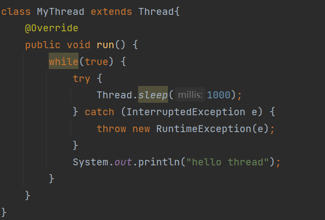 我们要写一个MyThread 来继承Thread 重写run来创建线程