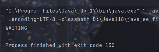 可以观察到main线程 进入waiting状态,一直处于阻塞中,但是一般程序处于WAITING的阻塞状态是使用wait和notify搭配使用,两个方法都是Object类中提供的,所以所有的类都可以使用wait和notify方法,以下用wait方法使线程处于WAITING状态。