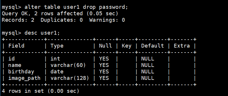 alter table user1 drop password;