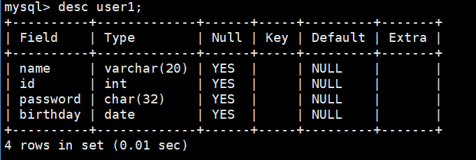 create table if not exists user1