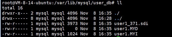 user1 表存储引擎是 MyISAM ,在数据目中有三个不同的文件,分别是: