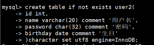 password char(32) comment '密码',