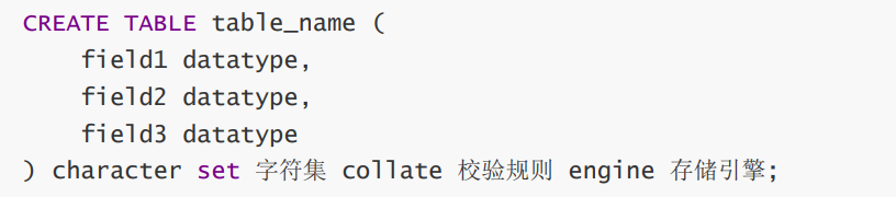 field 表示列名 datatype 表示列的类型