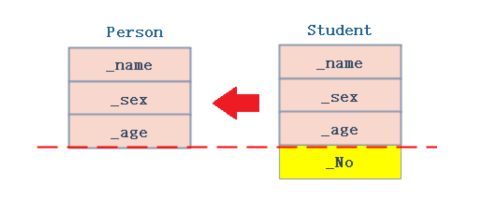 - public继承的派生类对象可以赋值给基类的指针/基类的引用。这里有个形象的说法叫切片 或者切割。寓意把派生类中基类那部分切出来,基类指针或引用指向的是派生类中切出来的基类那部分。