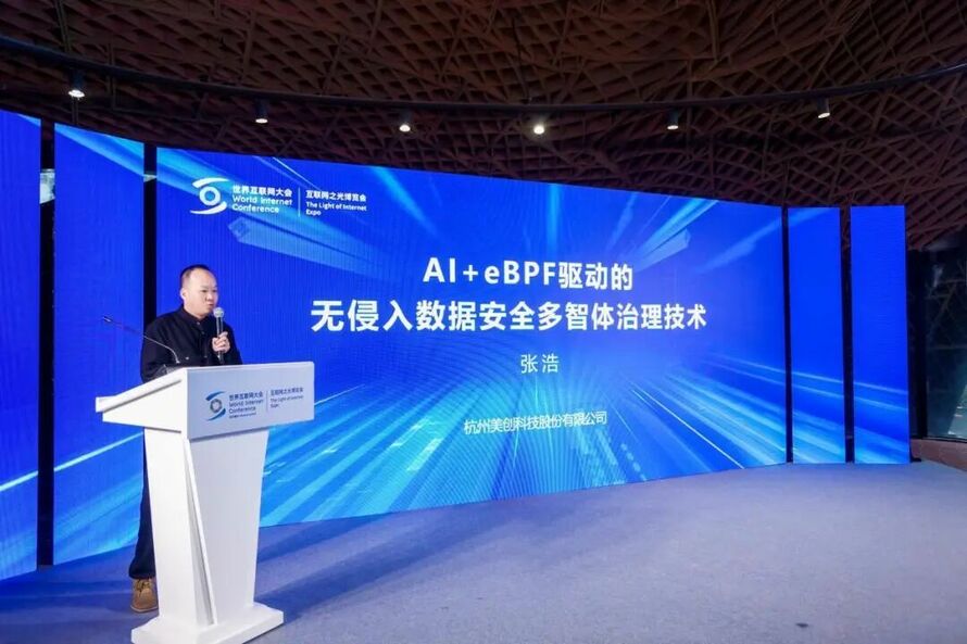 11月6日,2025年世界互联网大会乌镇峰会召开,"互联网之光"博览会同期举行,杭州美创科技股份有限公司(以下简称"美创科技")CAIO张浩发布基于AI+eBPF驱动的无侵入数据安全多智体治理技术,提供数据安全治理新范式。