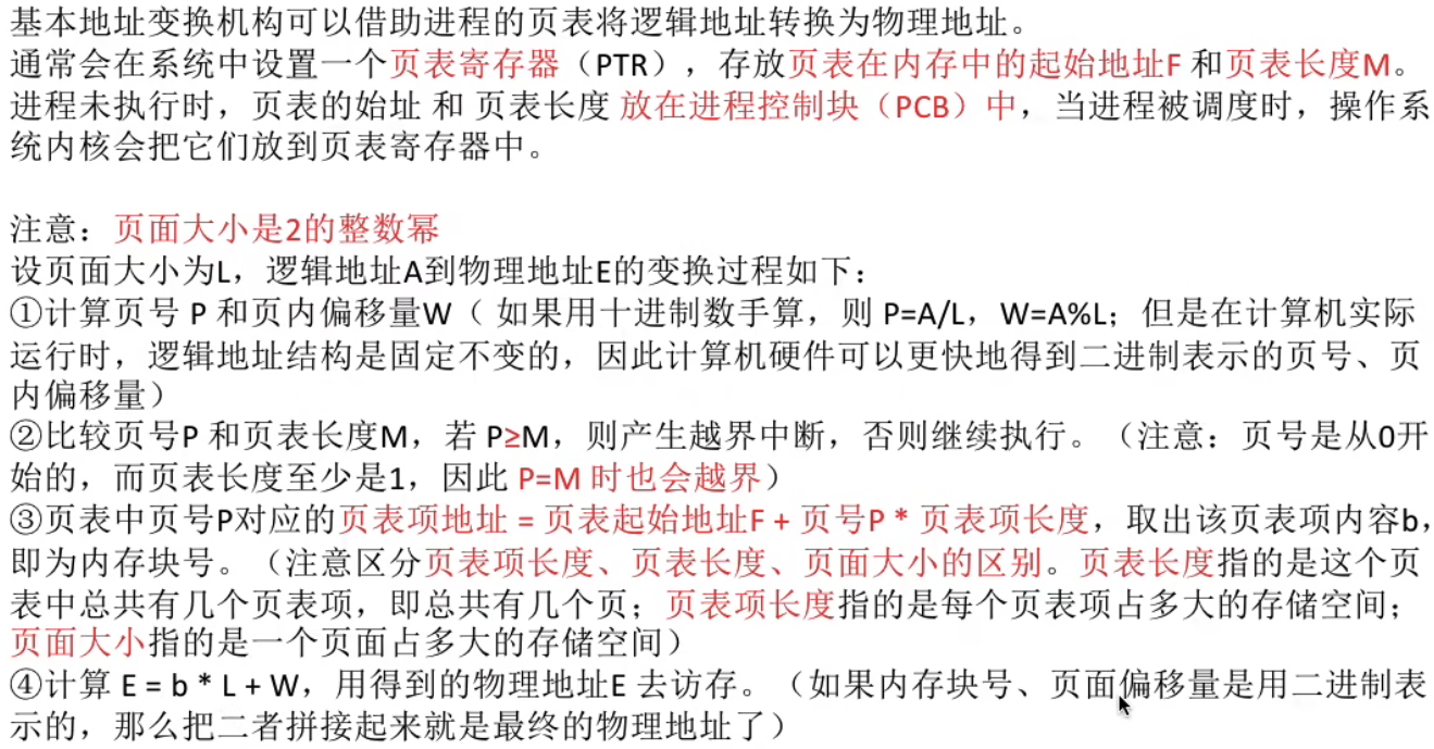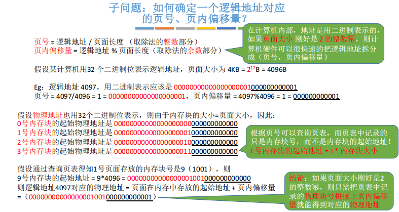 分页系统中,逻辑地址 被拆分为页面号 +页内偏移 两部分,物理地址 同样拆分为页框号 +页内偏移两部分。