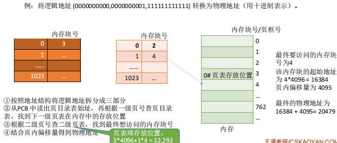 - 第二次内存访问 :访问目标数据 / 指令所在的物理内存。用物理块号 × 页面大小 + 页内偏移合成物理地址,然后访问该物理地址对应的内存单元,读取数据或指令。