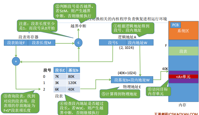 段号段内地址段号的位数决定了每个进程最多可以分几个段,段内地址位数决定了每个段的最大长度是多少。