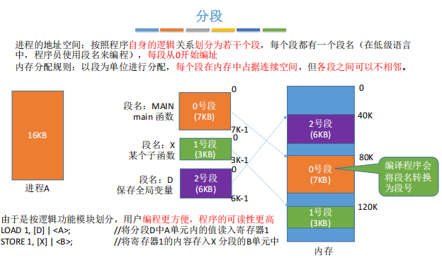 分段系统的逻辑地址结构由段号(段名)和段内地址(段内偏移量)所组成: