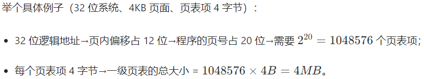 这意味着:每个进程都要占用 4MB 的连续物理内存存放页表------ 哪怕进程本身只有 1KB(只需要 1 个页面),也得分配 4MB 连续内存存页表,这是巨大的浪费。而且系统中同时运行多个进程时,要分配多个 4MB 连续内存,难度也很大。