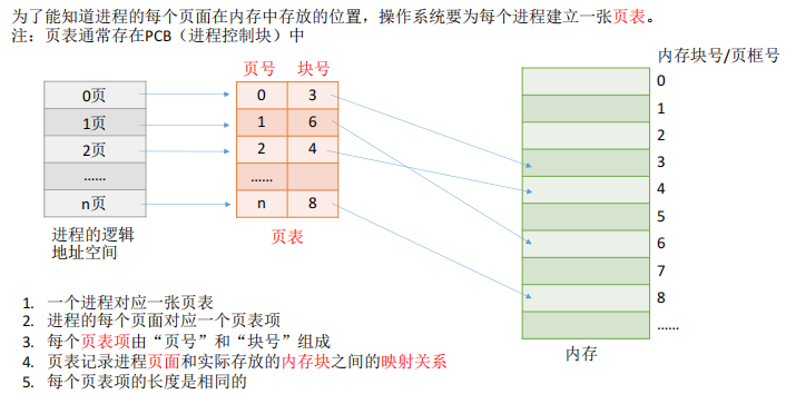 - 页面 :将用户程序的逻辑地址空间 划分为固定大小的页面,每个页面大小相等。