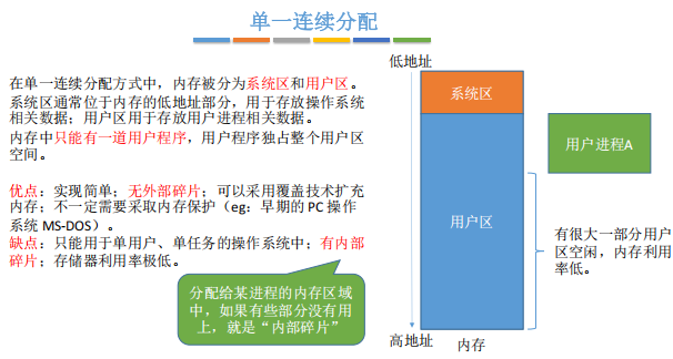 其物理地址连续,无需复杂的地址映射,但受限于连续空间的要求,存在内存利用率低、碎片多等问题。