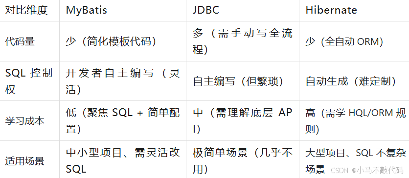 作为 Java 开发者,你是不是曾被 JDBC 的繁琐代码劝退 ------ 加载驱动、创建连接、处理 ResultSet,一堆模板代码占用大量精力?又或者觉得 Hibernate 的 "全自动" 太笨重,想改个 SQL 都要绕半天?