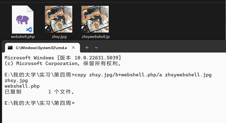 cmdcopy zhsy.jpg/b + webshell.php/a zhsywebshell.jpg -