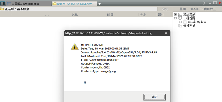 - 工具:中国菜刀(连接webshell)、BurpSuite(抓包改包)、任意图片文件(≤100K,用于High级别绕过);